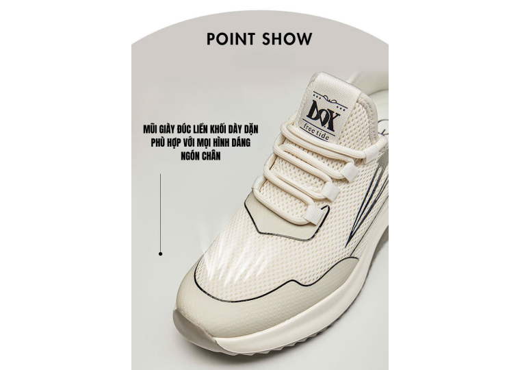 Đặc điểm nổi bật: Kiểu dáng thể thao khỏe khoắn, đế tăng chiều cao êm chân