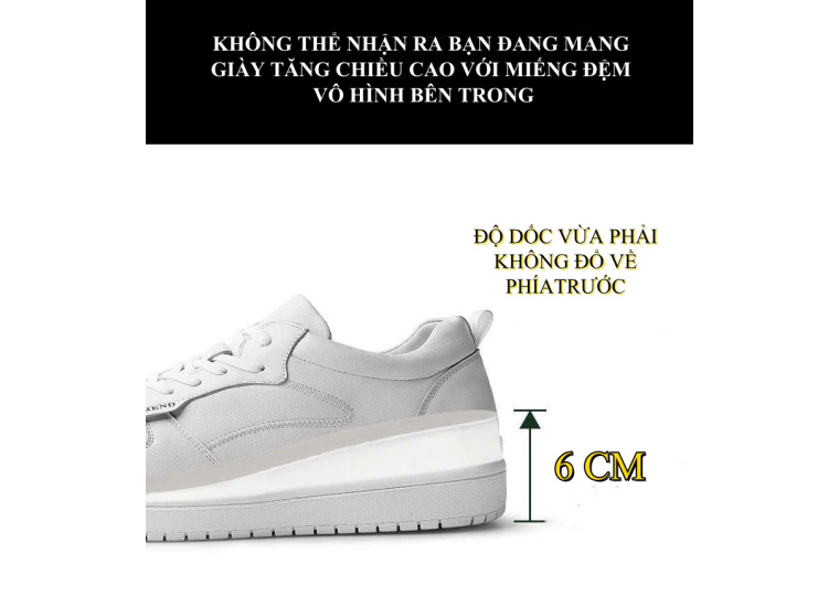 Đế giày: Tăng chiều cao lên đến 6,5 cm